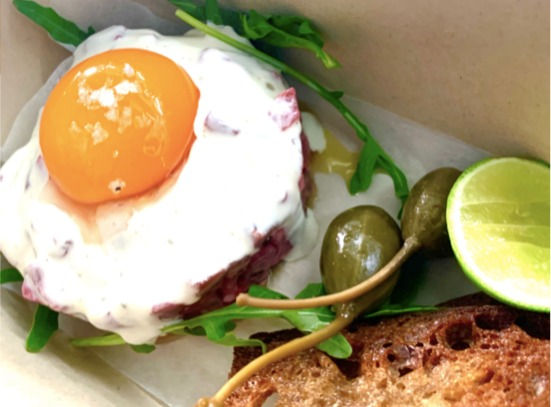 鞑靼牛肉 à I’Anchoïade 和 œufs fermiers avec 薯条